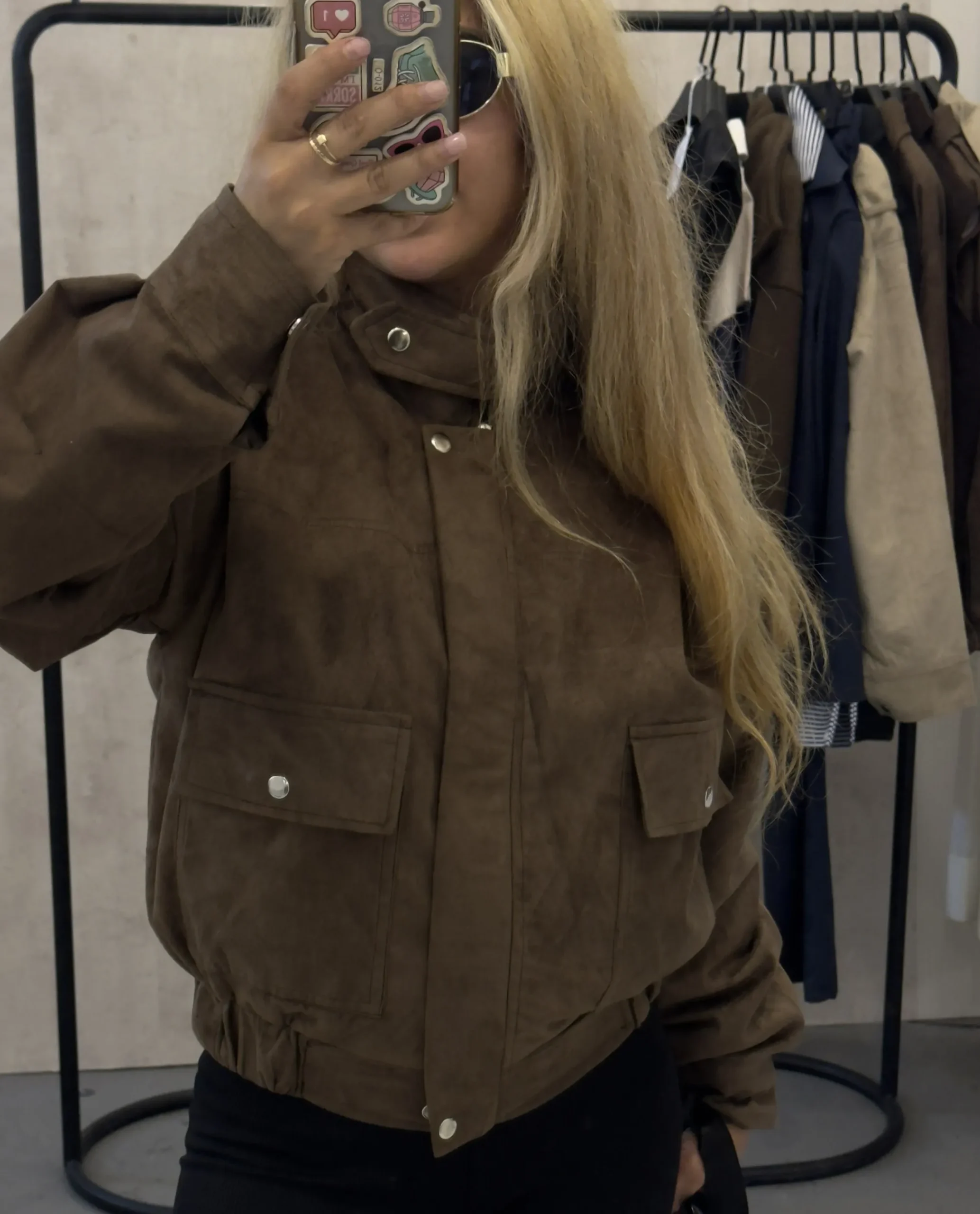 خرید بامبر جکت جیر زنانه با طراحی مدرن و ترکیب رنگ‌ های گرم قهوه‌ ای و کرم، گزینه‌ای ایده‌ آل برای استایل پاییزی و زمستانی است. این مدل با الهام از سبک کلاسیک بامبر، در عین سادگی جلوه‌ ای شیک و منحصر به‌ فرد به استایل شما می‌ دهد. جنس جیر باکیفیت به‌ کاررفته در این جکت، علاوه‌بر نرمی و لطافت، دوام بالایی دارد و در برابر سرما عملکرد مطلوبی از خود نشان می‌ دهد.